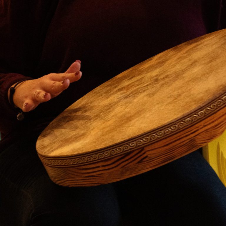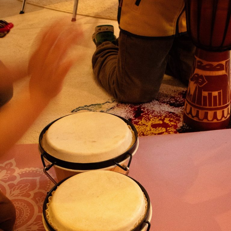 Lernen der Grundstellungen und Schlagtechniken, gemeinsam einen Rhythmus finden und trommeln, Verbindung mit dem Instrument.